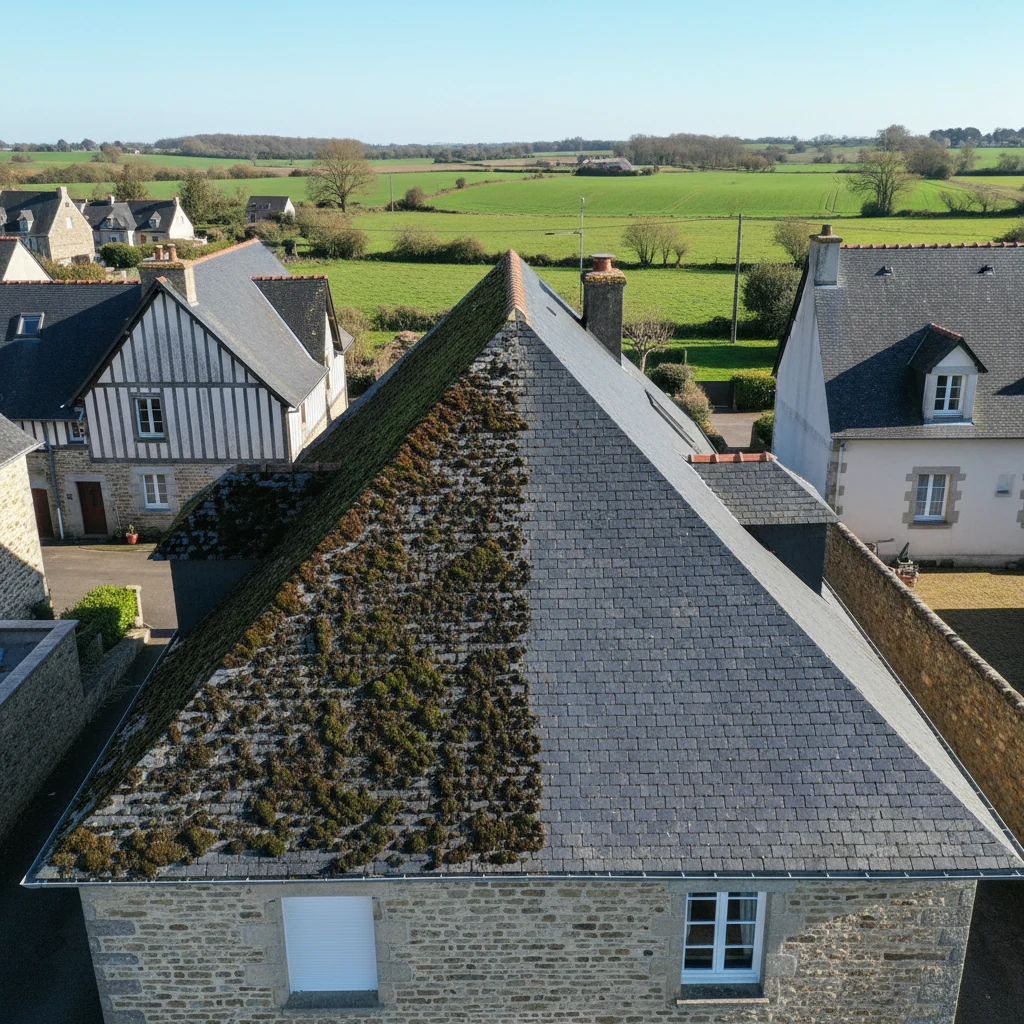 « Toiture en ardoise démoussée et hydrofugée à Rennes. Résultat impeccable. Équipe très professionnelle. »